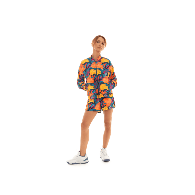A Jaqueta Manga Longa Stamp Nylon Techno Speed combina tecido tecnológico leve com estampa tropical colorida, perfeita para sobrepor top e short ou legging. O nylon techno speed é um material com boa resistência, secagem rápida e opção de acabamento repelente à água, otimo para jaquetas corta vento e peças utilitárias. O modelo conta com abertura frontal em zíper e bolsos laterais, oferecendo praticidade no dia a dia. Destaques do produto: - Tecido Nylon Techno Speed: leve, resistente, respirável e com possibilidade de repelência à água. - Estampa ¿stamp¿ supercolorida, que transforma o conjunto em protagonista do look. - Ideal para corrida leve, caminhada, viagens e uso casual esportivo.