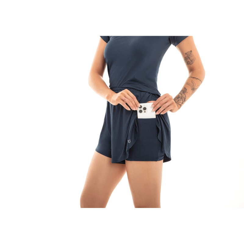 O Shorts Curto Sobreposto Active Dry possui cós com elástico e ajuste, além de bolso lateral funcional na parte interna para levar celular e pequenos itens durante o treino. O tecido Active Dry é uma malha de poliéster com tecnologia dry fit, que absorve o suor, seca rápido e oferece toque fresco, ideal para corrida, caminhada, funcional e treinos em dias quentes. A sobreposição garante liberdade de movimento e mais segurança, evitando transparência e atritos. Destaques do produto: - Design 2 em 1: short interno de compressão leve e externo soltinho. - Tecido Active Dry: respirável, de secagem rápida e com sensação de frescor mesmo em treinos intensos. - Bolso lateral prático para celular, chave ou cartão.