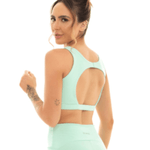 Top cropped esportivo em Suplex Light UV, com frente lisa e decote redondo, e costas com recorte em gota que deixa parte das costas à mostra, garantindo visual moderno e ventilação extra durante o treino. O Suplex Light UV é uma malha de poliamida com elastano, leve, elástica e com toque gelado, indicada para moda fitness e que pode oferecer proteção UV permanente, ideal para atividades ao ar livre. O modelo funciona bem sozinho ou em conjunto com legging/short de cintura alta, entregando sustentação moderada e liberdade de movimento. - Decote redondo e modelagem mais curta. - Costas com recorte em gota. - Elasticidade em todas as direções o que proporciona conforto.